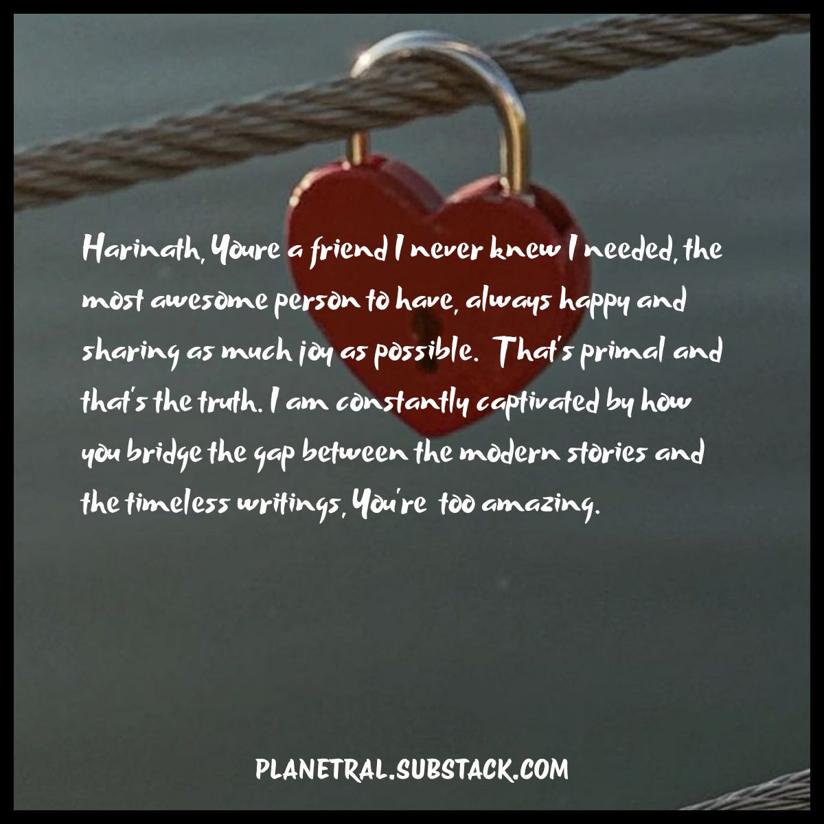 This love letter is an appreciation piece to everyone I met a year ago when I joined Substack, who became real time friends to me. Creators who built genuine connections with me. Creators who valued community and craved one without so much noise. People who choose PLANET RAL and the value of what we bring to the table and then choose to sit and dine.