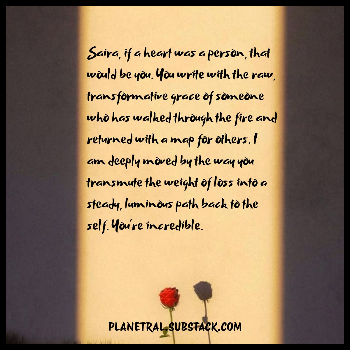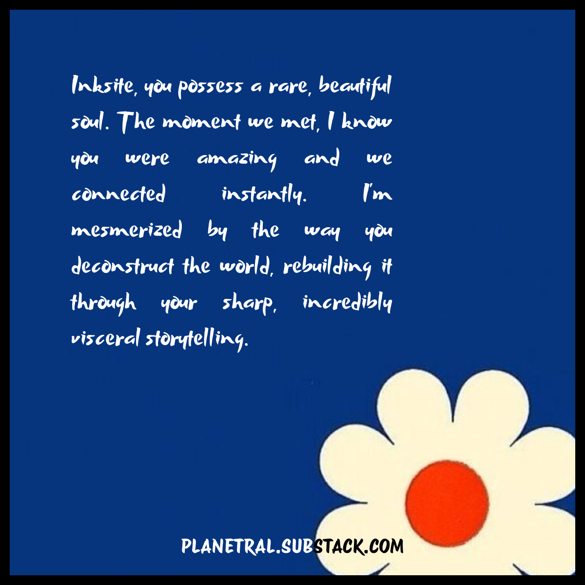 Before I close this little letter, I just want to say thank you to everyone already writing with us, reading with us, orbiting with us, and to those who only just found their way here. Creative communities are not built all at once; they grow through small recognitions, shared sentences, and people deciding to stay a little longer than expected.
