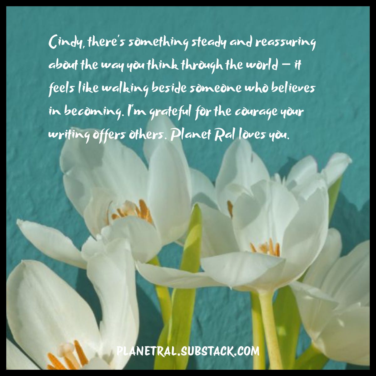 I just want you to know that meeting you already feels like part of what Planet Ral is becoming — a place where people don’t just publish beside each other, but begin to belong beside each other.