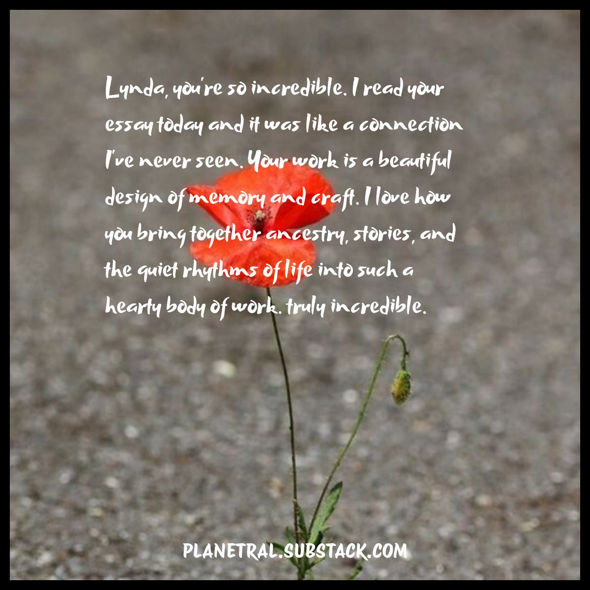 A note of love to the writers I met just yesterday here and some I've known a while. It still amazes me how quickly strangers become part of the same orbit when the conversation is honest and the work is real. Creative community doesn’t always arrive loudly; sometimes it forms quietly, in replies, in shared sentences, in recognition.