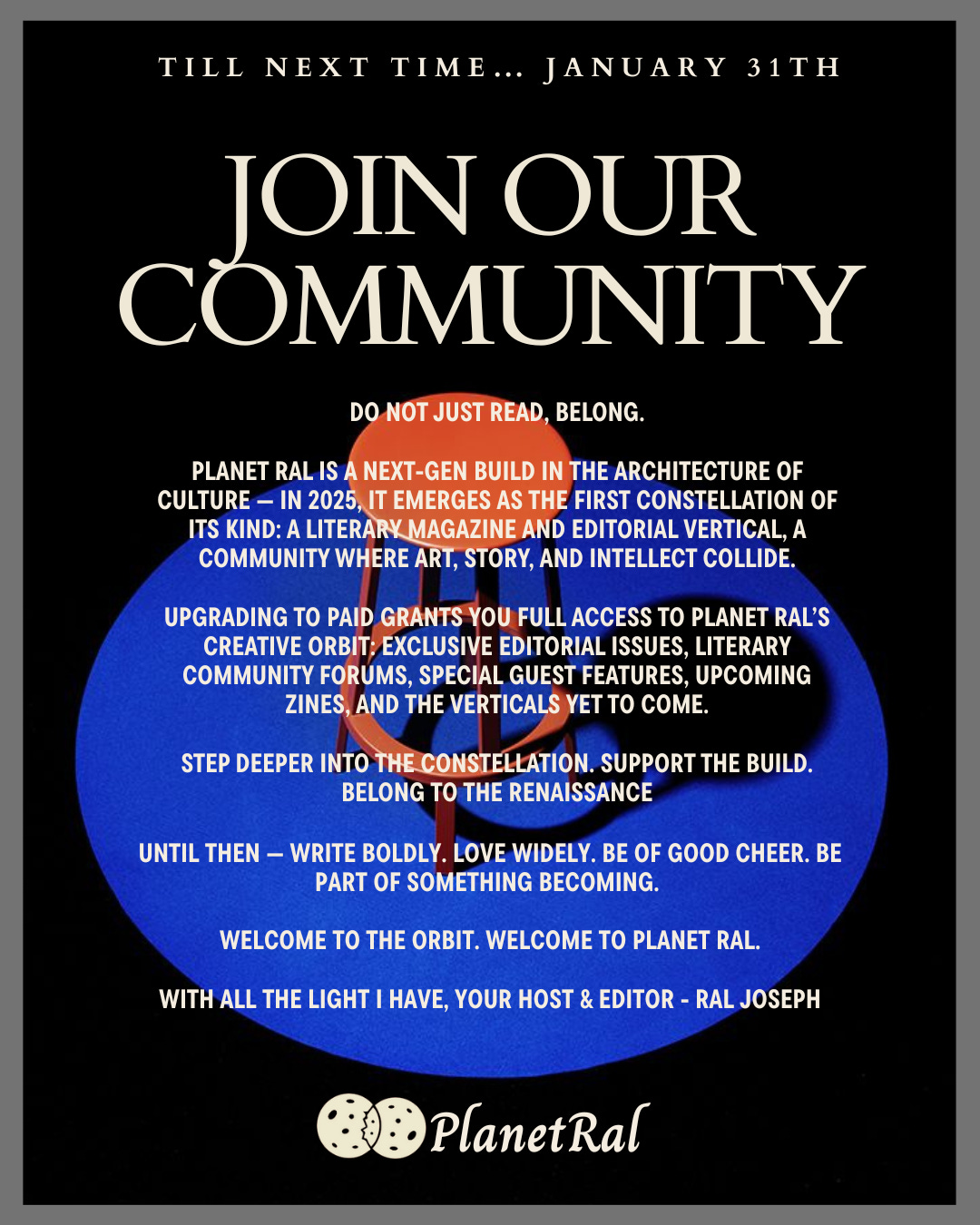 If Planet Ral has ever moved you, held you, inspired you, or made you feel less alone, this is a moment where your support truly matters. Ordering a copy, choosing the physical edition, or upgrading to a paid subscription directly sustains this work and allows it to keep breathing, growing, and reaching further.
